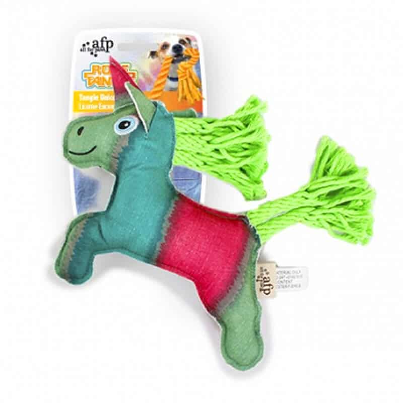 El AFP Rope Tangle Unicornio cuenta con un entretenido y colorido diseño que llamara la atencion de tu pequeño amigo gracias a sus múltiples texturas. El AFP Rope Tangle Unicornio es además un juguete especial para cachorro, que ayudara a reforzar la fuerza de los dientitos de tu bebe de 4 patas y ayudara a aliviar las molestias producidas por los cambios de dentadura.