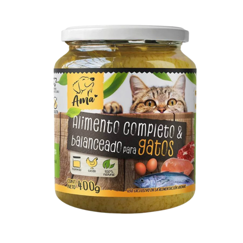 Ama Menu para gatos – 400gr es un alimento húmedo para gatos adultos preparado con ingredientes de grado alimenticio humano, que incluyen verduras y pollo para obtener proteínas de excelente valor biológico y biodisponibilidad. Los menú de Ama son alimentos cocidos para evitar el contagio de enfermedades asociadas a las bacterias de la comida cruda, no habiendo problema en dar diariamente y más de una vez al día.
