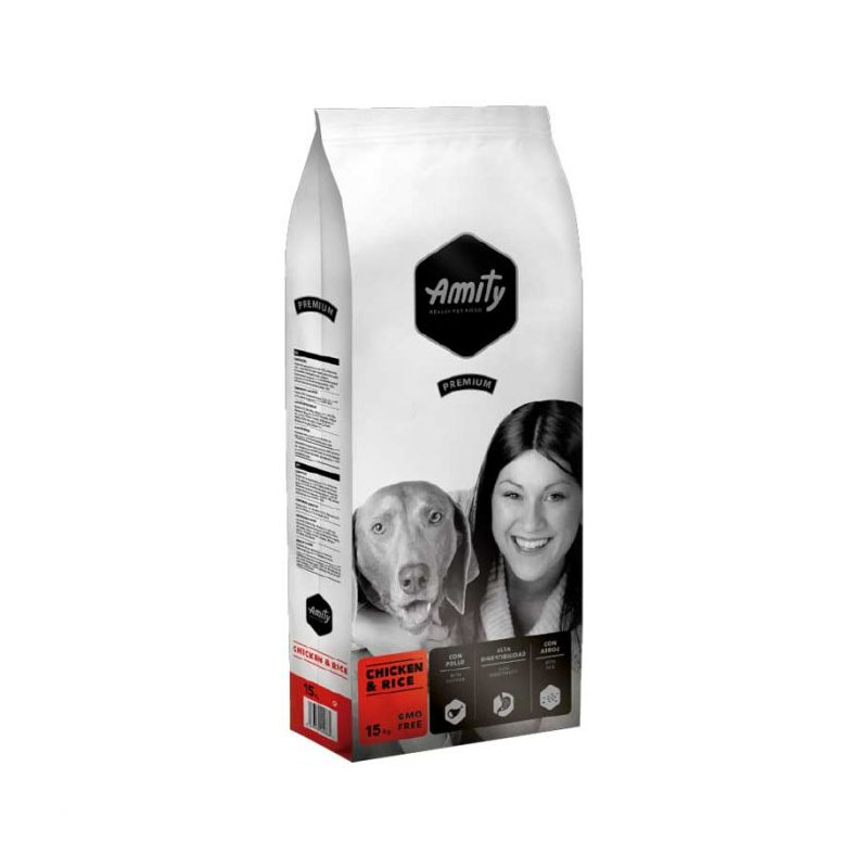 AMITY PREMIUM PERRO CHICKEN & RICE 4KG es un alimento seco especialmente formulado para satisfacer las necesidades nutricionales de perros adultos de razas medianas y grandes. Con un contenido rico en carne deshidratada de pollo y arroz, este alimento proporciona una dieta balanceada y altamente digestible que contribuye a la vitalidad, salud digestiva y bienestar general de tu perro.
