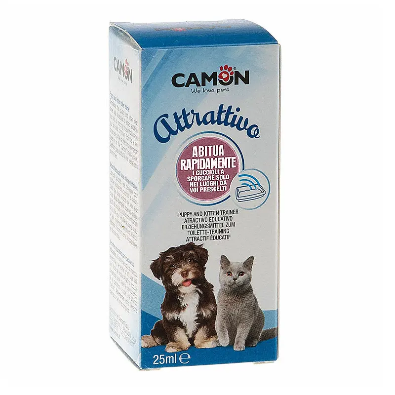 Attrattiva Educador Sanitario 25ml es un producto cautivador, instructivo e higiénico es un soporte válido para mascotas pequeñas. Producto específico para cachorros y gatitos, desarrollado para enseñar a sus mascotas rápidamente qué lugar deben usar para sus llamadas a la naturaleza.