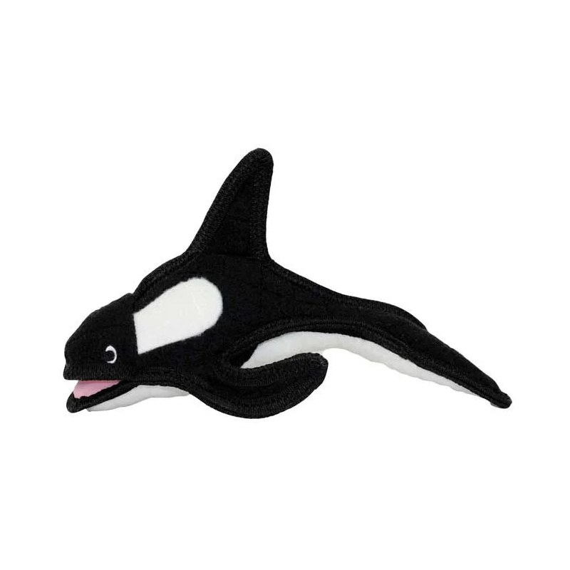 El Ballena asesina – Tuffy Zoo está elaborado con hasta 4 capas de material, cosidos con hasta 7 filas de puntadas para mayor durabilidad. Se agrega una cinta protectora al borde exterior para cubrir las costuras y hacer que el juguete sea aún más fuerte.