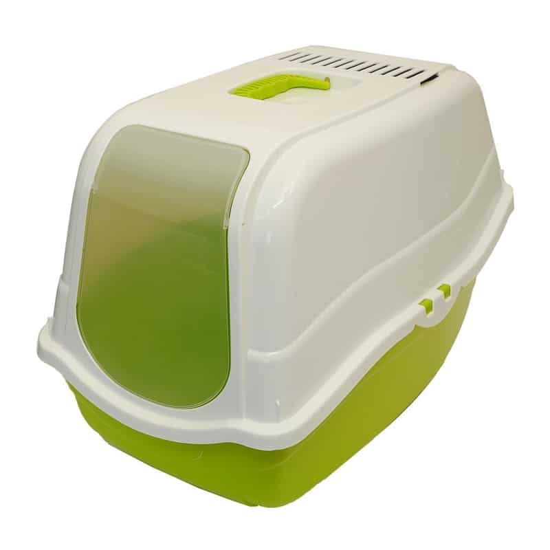 Baño Romeo Cerrado Verde es para gatos de cualquier tamaño, es un espacioso aseo cubierto, perfecto para nuestros animales de compañía. La gran abertura frontal hará que tu gato pueda entrar y salir sin esfuerzo, y su puerta abatible y translúcida permite el paso de la luz a la gatera.