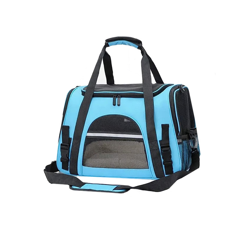 Bolso para Traslado de Gato – Celeste tiene espacio suficiente son crear la sensación de encierro y presión, con una malla que proporciona privacidad y transpirabilidad. Es un producto ligero, duradero y práctico, puede plegarse para almacenarse en espacios pequeños y fácil de limpiar.