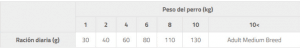 La cantidad diaria puede variar en función del entorno, el nivel de actividad y la edad del animal. El animal siempre debe tener agua fresca a su disposición.