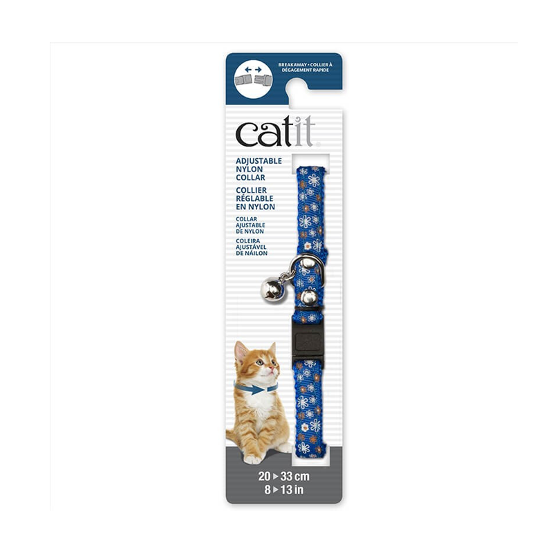 Catit collar ajust – azul con flores, un collar para gatitos aventureros