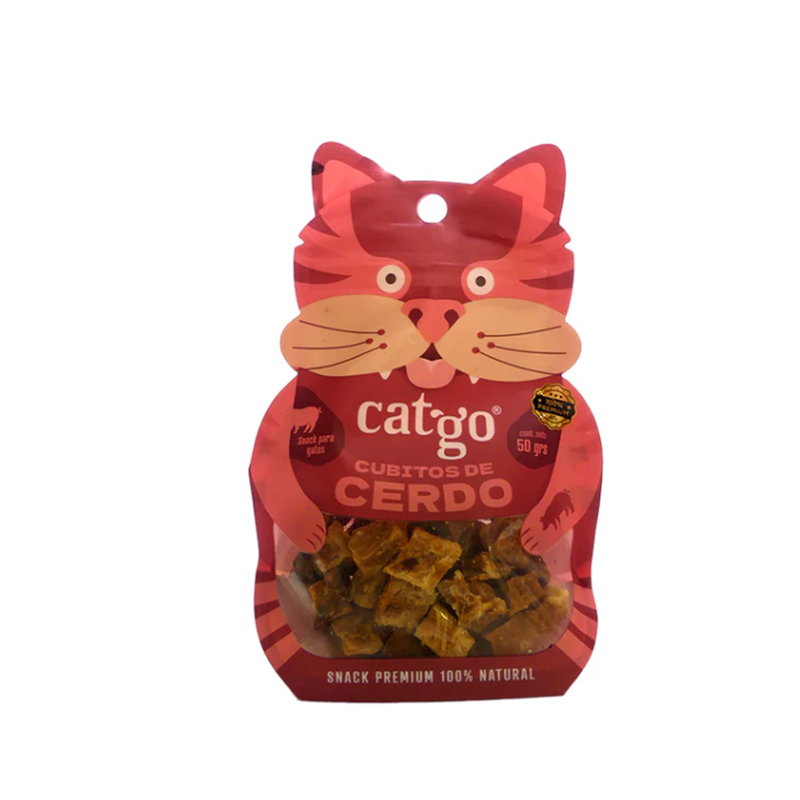 Snack para gatos 100% natural. Un snack sabroso y lleno de energía. Los cubitos de cerdo deshidratado Catgo son una alternativa natural, rica en proteínas y grasas saludables, que ayudan a mantener la vitalidad de tu gato. Perfectos como premio o complemento a su alimentación diaria, combinan sabor irresistible con nutrientes esenciales para su bienestar.