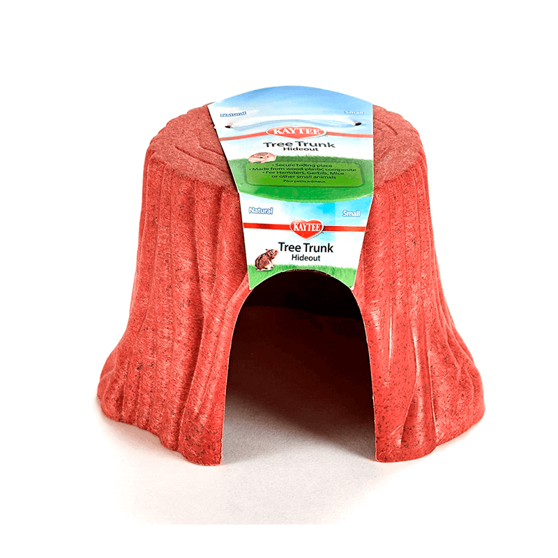 Árbol de refugio rojo para pequeños animales – Kaytee es un escondite de animales pequeños de tronco de árbol natural está hecho con la forma de un tocón de árbol viejo y proporciona un lugar de descanso seguro para hámsters, jerbos y ratones.