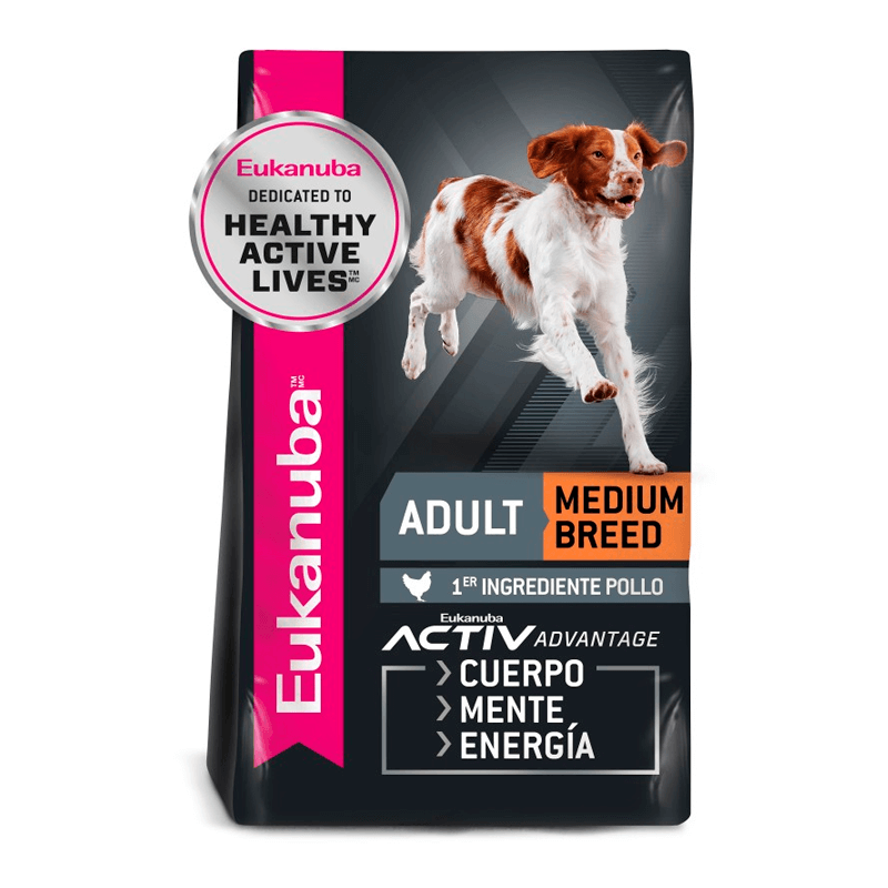 El alimento para perros Eukanuba ADULT MEDIUM BREED está formulado para cumplir con los niveles nutricionales establecidos por la AAFCO en los perfiles de nutrientes de alimentos para perros en mantenimiento.
