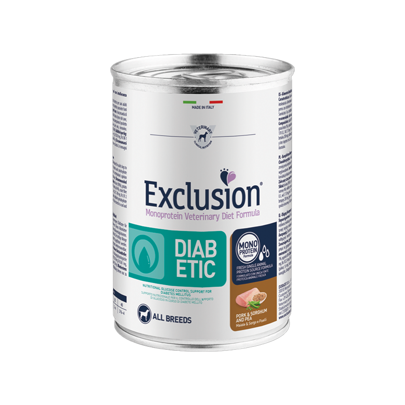 Exclusion Perro Diabetico Cerdo y Sorgo 400gr