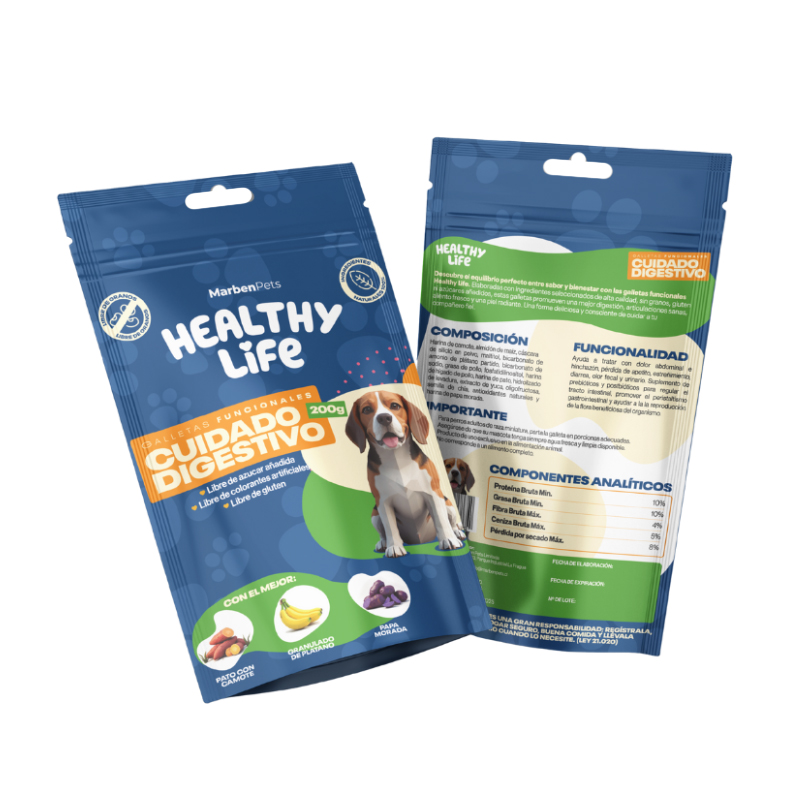 Haz de la hora de la merienda un momento especial y nutritivo con las Galletas Libre de Granos Healthy Life Cuidado Digestivo. Tu perro te lo agradecerá con cada lamido y salto de alegría.