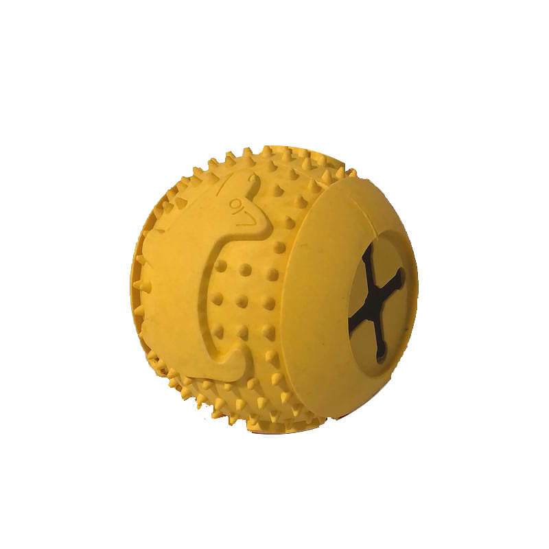 El juguete perro pelota goma snack con dientes Amarillo es muy práctico y sano que no solo entretiene a tu perrito, sino que también lo cuida. Por eso es importante, sea un anciano o un cachorro, que siempre tenga un juguete para morder en la casa.