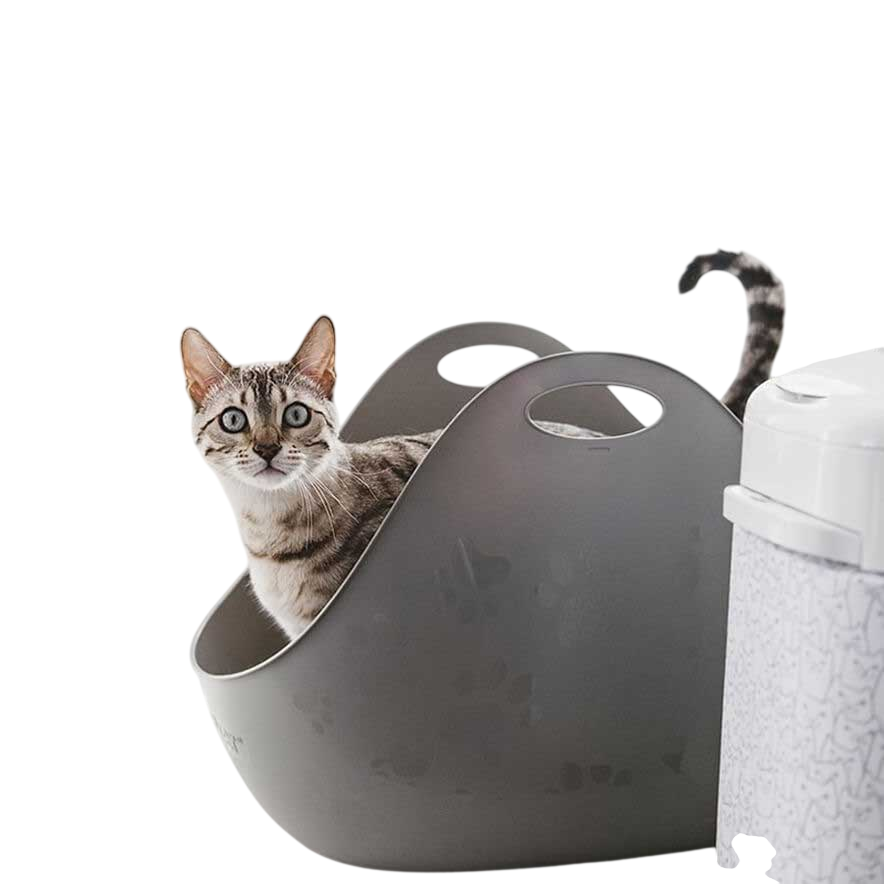 La Litter Box Bandeja Sanitaria con Pala Grey se diferencia de las bandejas higiénicas convencionales gracias a sus paredes laterales elevadas, que ayudan a evitar que la arena se esparza fuera mientras el gato excava. Su diseño completamente abierto ofrece una vista de 360°, brindando mayor seguridad y comodidad a tu gato al permitirle observar su entorno mientras realiza sus necesidades.