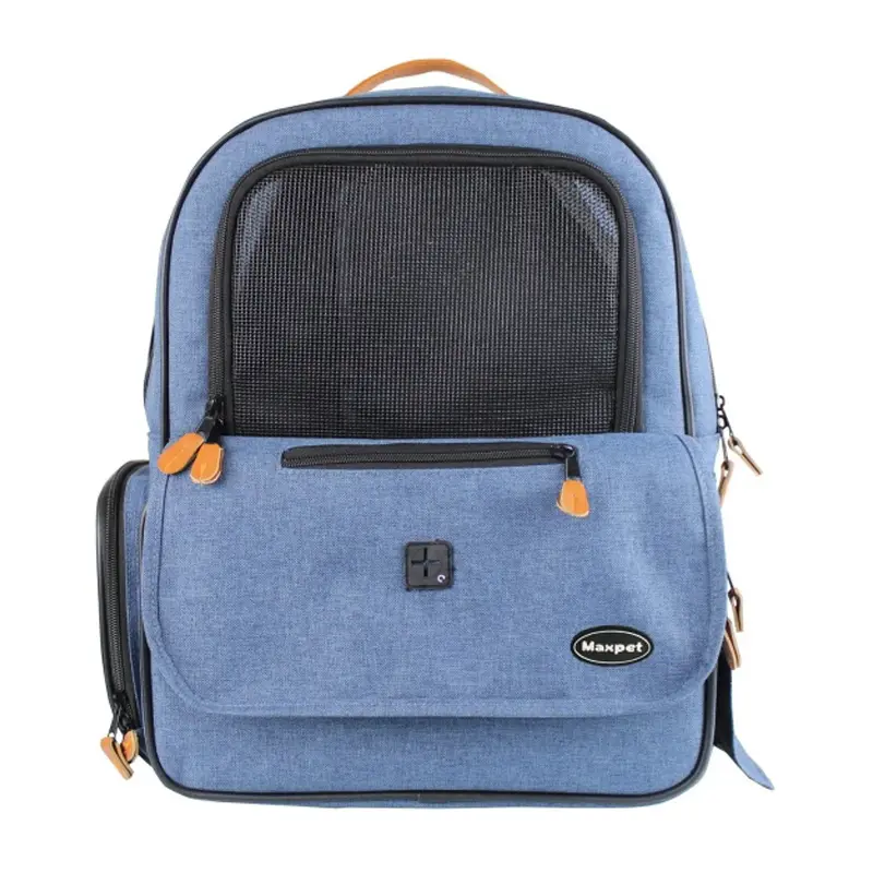 La mochila azul para pequeñas mascotas – Maxpet con un precioso diseño, es un cómodo bolso ideal para llevar a tu mascotas a tus viajes, con esta mochila no tienes excusa para dejar a tu mascotita en casa al salir de excursión o simplemente dar un paseo, dentro de ella tu mascota estará muy cómoda y confortable gracias a su diseño, además, tendrá una vista de todo el paseo. Ofrece gran comodidad, incluye asa para el hombro ajustable para facilitar su transporte.