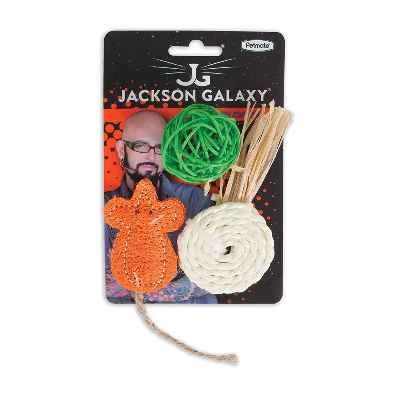 Los juguetes Natural Play Time 3 Colores – Jackson Galaxy son hechos con materiales 100% naturales han sido especialmente diseñados para que el juego sea más divertido y seguro para tu gato.