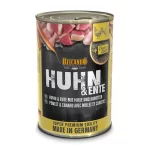 La comida húmeda Belcando Lata Pollo, Pato, Mijo y Zanahorias 400grs de alta calidad para su perro. Disponible en muchas variedades diferentes y ricas, con ingredientes que adquirimos de agricultura alemana de confianza.