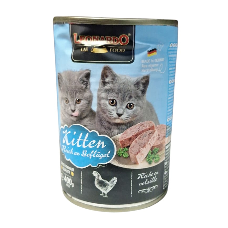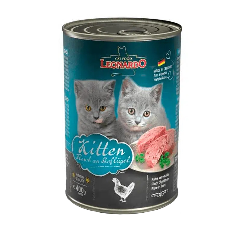 LEONARDO Lata KITTEN QUALITY SELECTION 400grs es un alimento húmedo indicado especialmente para gatitos.