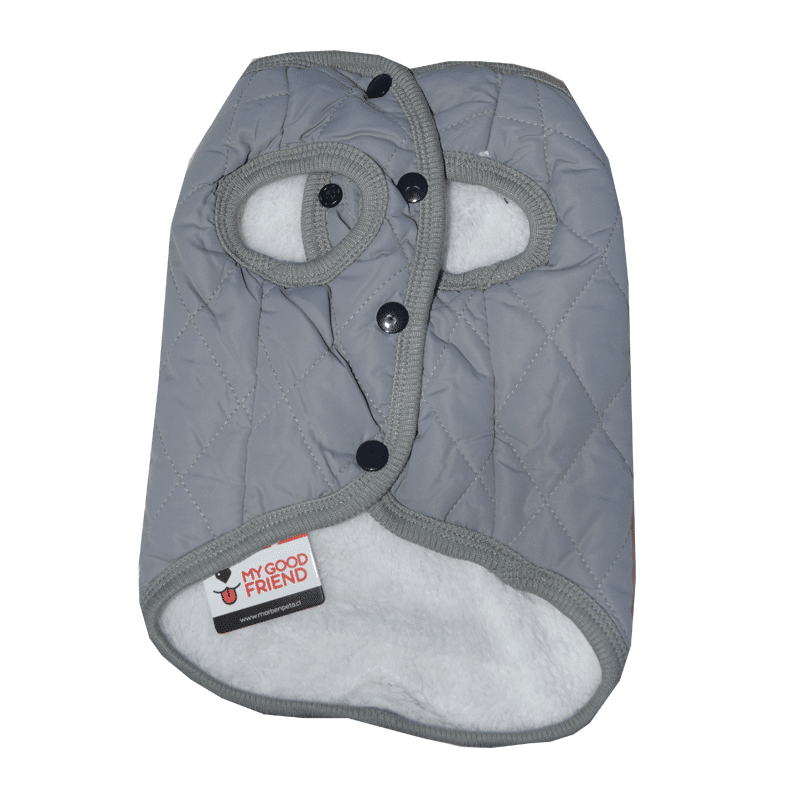 Parka Rombal L Gris, es fácil de colocar en tu mascota, con acceso a la correa, tu mascota no pasará frío, ni en casa ni en los paseos. Es una preciosa prenda de ropa que está fabricada con materiales ideales para cubrir a tu mascota. Tiene un lindo diseño sin mangas para mayor comodidad de tu mascota.