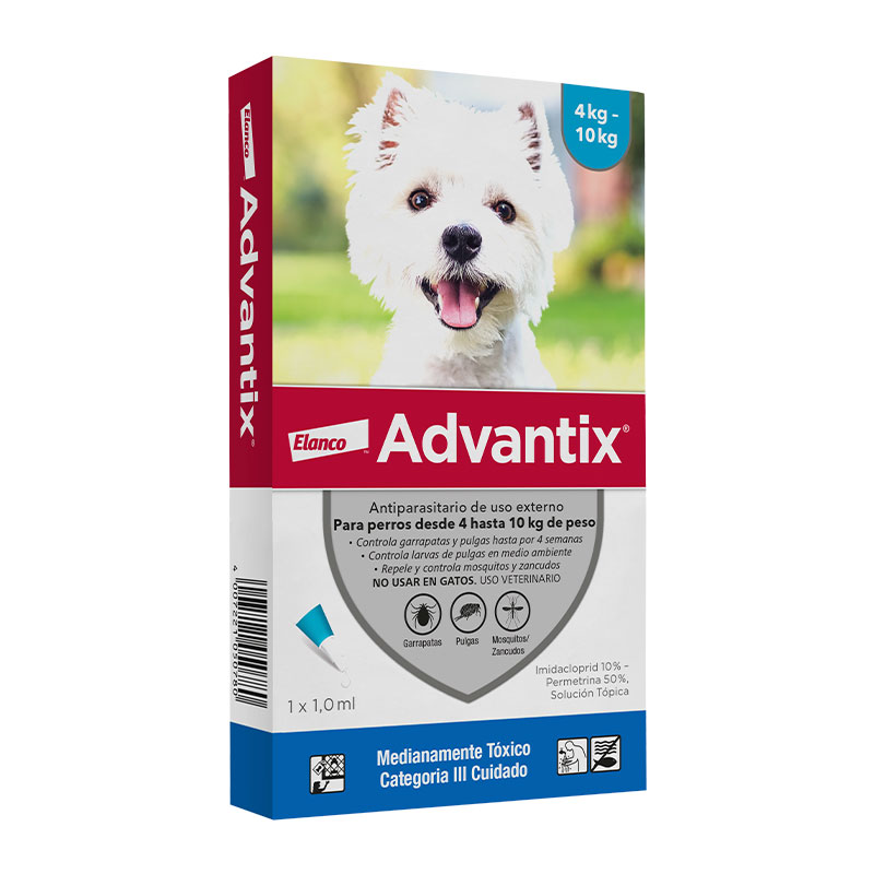 Pipeta Advantix para Perros – de 4 a 10 Kg es un pulguicida, garrapaticida y mosquicida de acción tópica Antiparasitario Advantix en forma de pipeta de uso externo solo para perros.