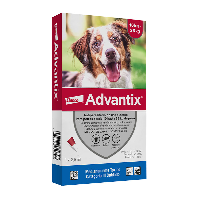 La Pipeta Advantix para Perros está indicado en el tratamiento y control de infestaciones de pulgas garrapatas, en perros.