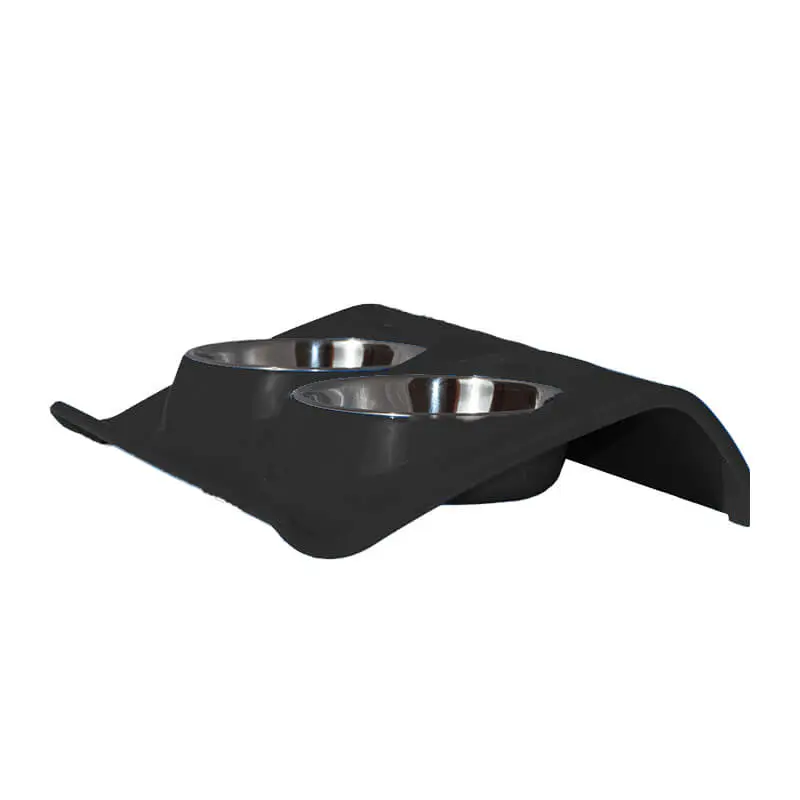 Su divertido y atractivo diseño lo convierten en un comedero ideal para tu mascota. El plato alimentador doble de color negro son dos platos es ideal para gatos y perritos. Tiene dos plato exterior desmontable fácil de limpiar y liviano. Puedes utilizarlos uno para agua y otra para la comidita.