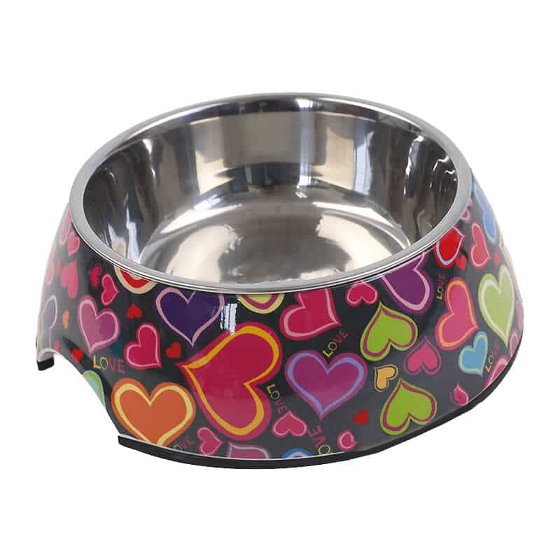 El Plato Alimentador Redondo Motivo de Mascan viene con un diseño súper original de corazones para el plato de comida del regalón de la casa. Su divertido diseño quedará muy bien en tu casa. Este plato está hecho de melamina con un plato desmontable de acero inoxidable y tiene un material antideslizante en la base. Durable y fácil de lavar. Este encantador diseño es de color negro con estampado de corazones de colores.