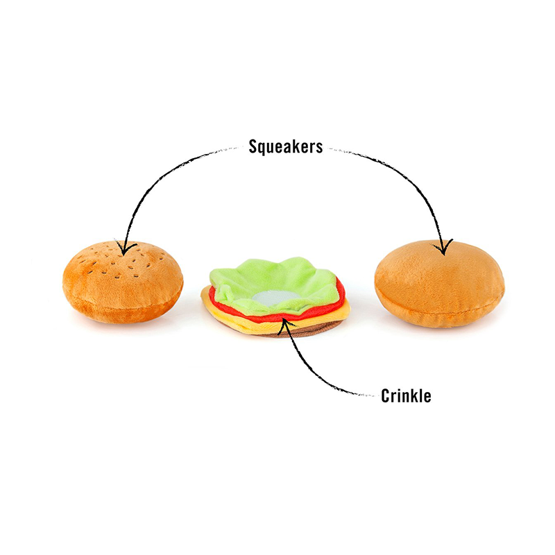 ¡La colección American Classic de juguetes de peluche de PLAY es para los amantes de la comida en tu vida! ¿Quién no disfruta de un buena y jugosa hamburguesa, llevalo mas alla regalandoselo a tu cachorro. Haga que cada día sea un día de trampa con la colección de juguetes para perros de peluche Snack Attack de PLAY. Todos tus placeres comestibles, inclusive los culposos ahora están en un la linea de juguetes: comienza con la deliciosa pizza Puppy-roni, seguida de algunas papas fritas Fluffles y lava toda esa delicia con una refrescante gaseosa Good Boy Cola. Como refrigerio más tarde, lame un cono de helado Swirls n Slobbers Soft Serve o una piruleta Lollipup.