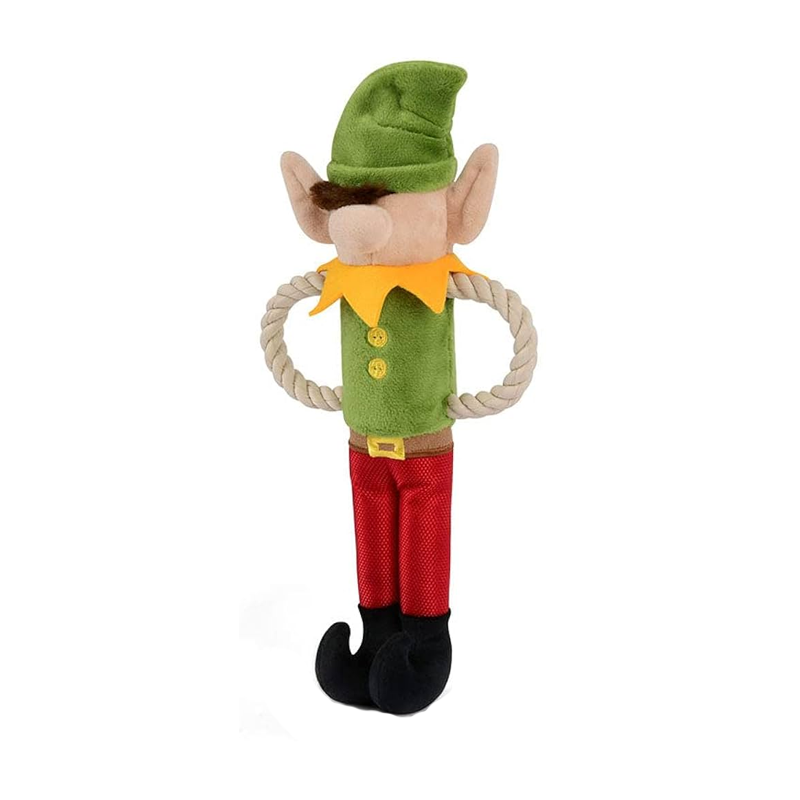 PLAY JUGUETE MERRY WOOFMAS SANTA LITTLE ELF es un encantador elfo tiene brazos de cuerda perfectos para un animado juego de tira y afloja. Y eso no es todo, el centro del elfo cobra vida cuando se agita de un lado a otro, añadiendo una capa extra de emoción a la colección de juguetes navideños de tu cachorro.