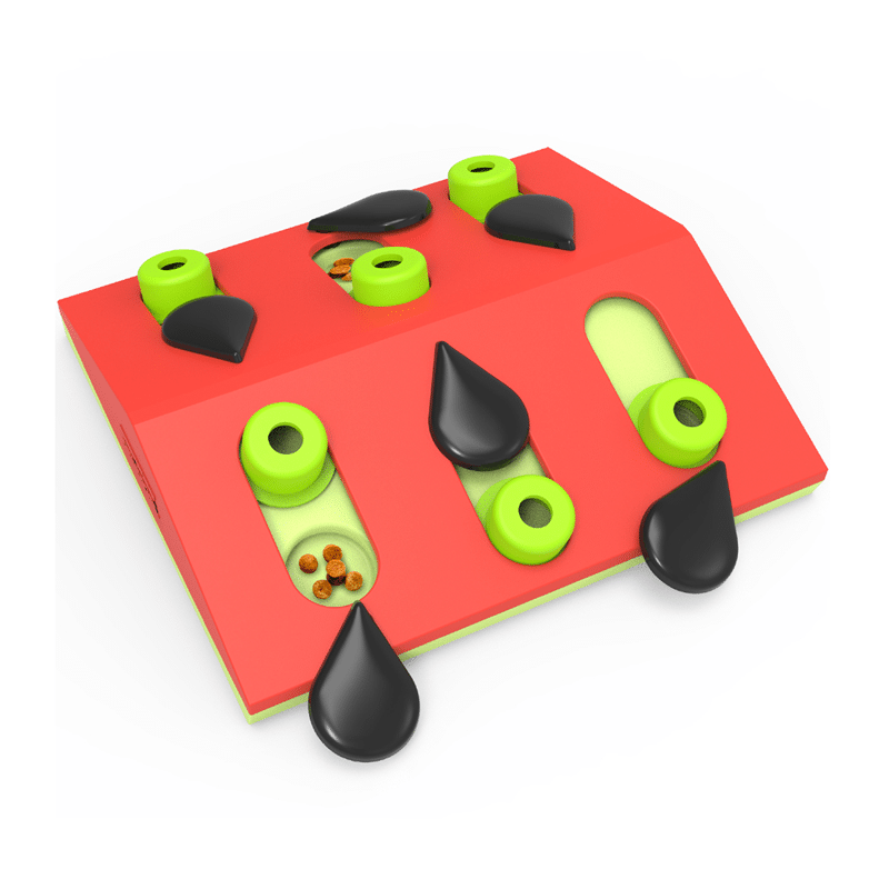 El Puzzle Melon Madness es un preciosos rompecabezas para gatos, tu gato deberá golpear las clavijas y girar las semillas para descubrir 6 compartimientos ocultos para los snacks. Ajusta la dificultad del Puzzle Melon Madness para que sea más fácil para los gatitos principiantes o más desafiantes para los gastos súper inteligentes.
