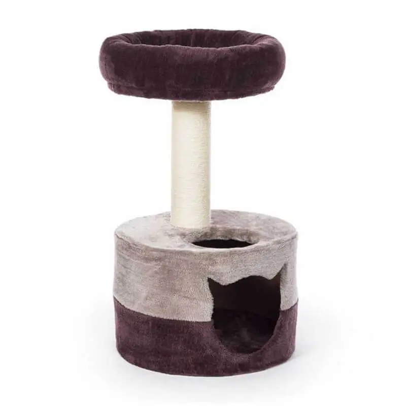 El Rascador Morado con Guarida es un practico centro de entretenimiento apto para 1 o 2 gatos. Combina la suavidad de la felpa con el yute duradero, generando el espacio perfecto para que tu gato pueda recostarse, dormir y rascar. Está compuesto por un poste de cuerda de yute natural para rascado, 1 guarida inferior y 1 cama superior.