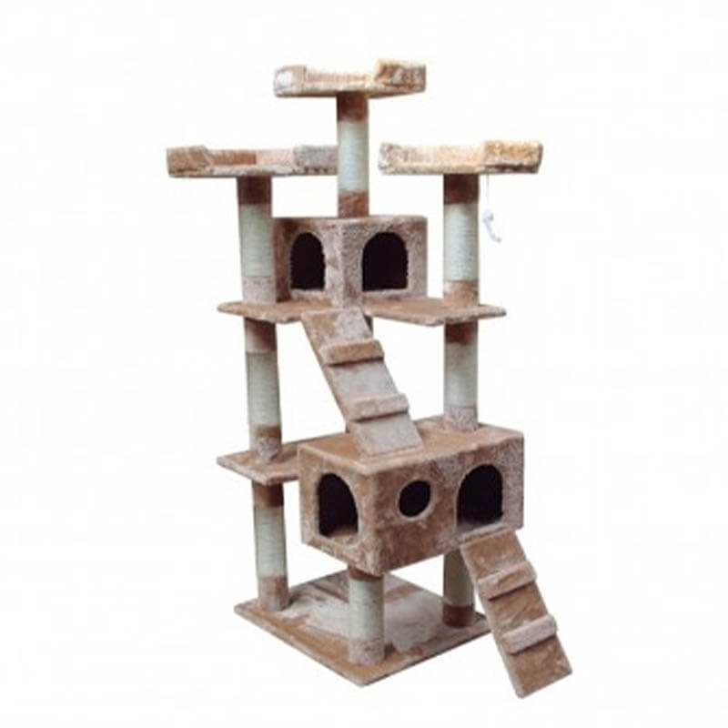 El Rascador torre beige ofrece todo aquello que necesita tu gato para estar cómodo y feliz. Posee una práctica escalera para que tanto gatos pequeños como mayores puedan trepar por él con total comodidad y seguridad. Además, cuenta con una casita y múltiples plataformas lo que lo convierte en un rascador ideal hasta para 3 gatos.