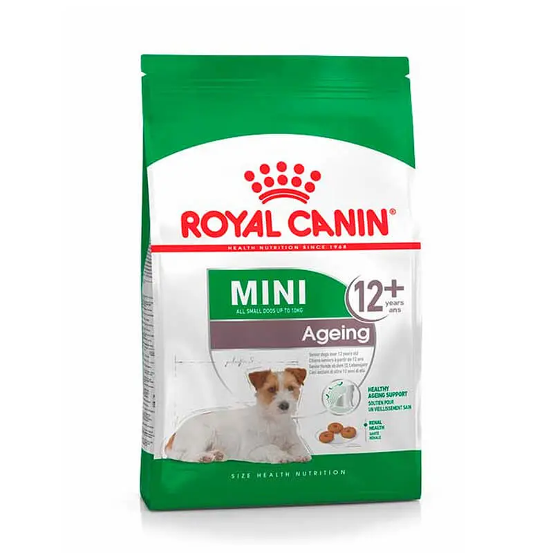 - Royal Canin Mini Ageing 12+ apoya el envejecimiento saludable en perros de razas pequeñas