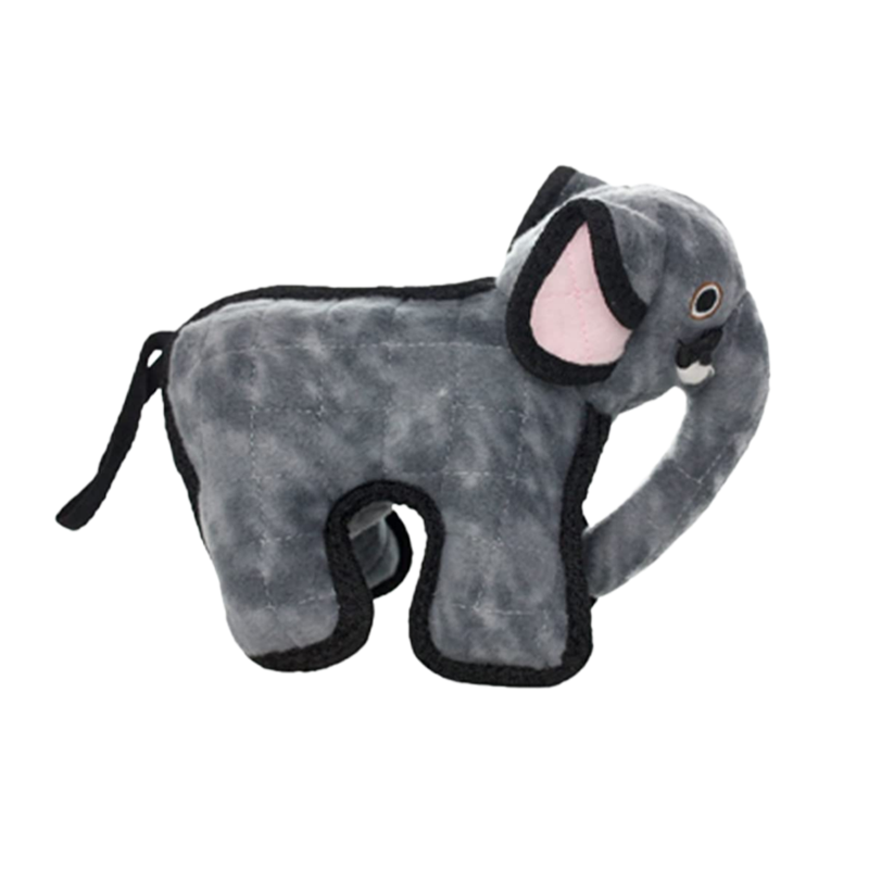 T-Z- Elephant Dog Toy- Tuffy Zoo está elaborado con hasta 4 capas de material, cosidos con hasta 7 filas de puntadas para mayor durabilidad. Se agrega una cinta protectora al borde exterior para cubrir las costuras y hacer que el juguete sea aún más fuerte.