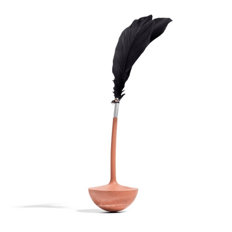 - Hecho de caucho natural y plumas.