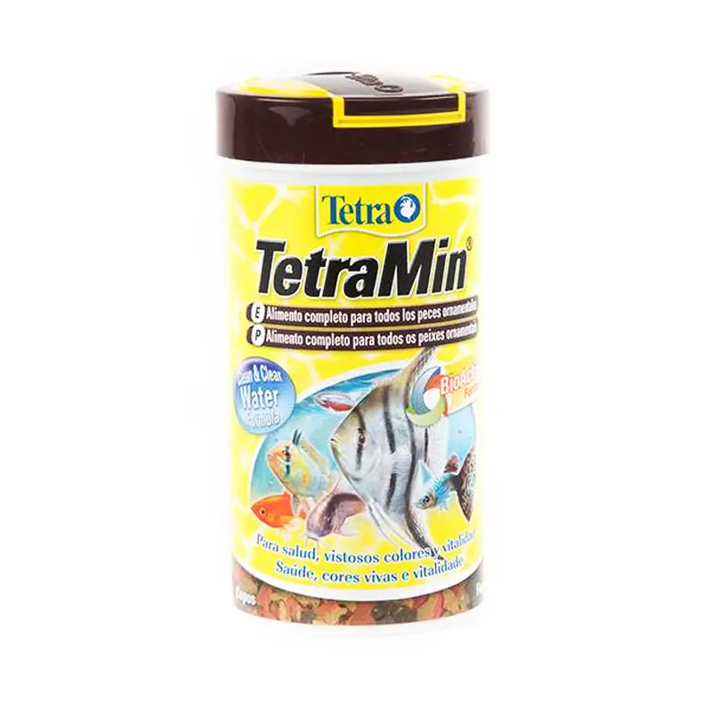 TetraMin Flakes 52g – 250ml, es una comida completa y equilibrada en forma de escamas, diseñada para ser usada como alimento principal de todo tipo de peces ornamentales.