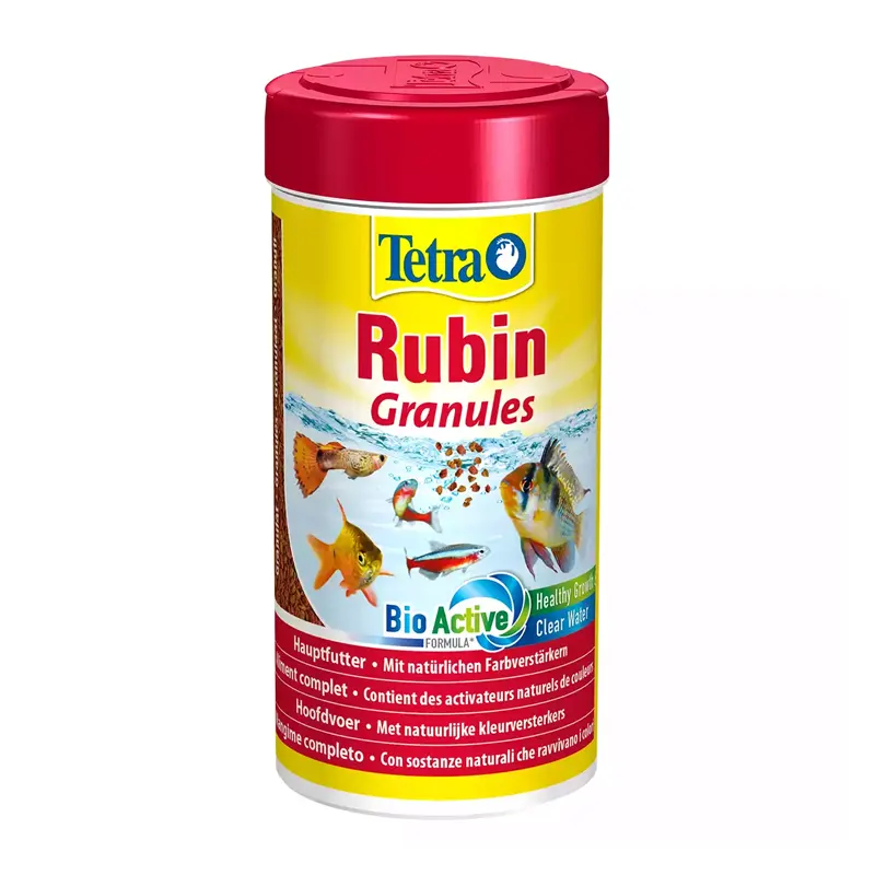 Tetra Rubin Granules es un alimento granulado con potenciadores de color naturales para colores más intensos .