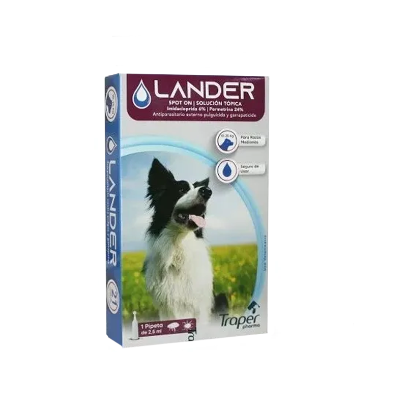 La Trap lander pipeta perro 10-25kg 1 unidad es un tratamiento tópico diseñado para proteger a tu perro de infestaciones por pulgas y garrapatas. Ideal para perros con un peso entre 10 y 25 kg, esta pipeta ofrece una solución eficaz y de fácil aplicación.