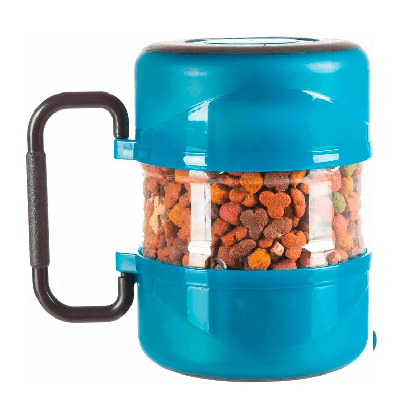 El set para viaje Trixie tiene dos comederos con una capacidad de 0,75 litros que te servirán de comedero o bebedero. El recipiente para guardar la comida tiene una capacidad de 2 litros. Este recipiente tiene una tapa de rosca muy práctica y ayuda a que la comida se conserve fresca. Es, además, muy cómodo para dosificar la comida.