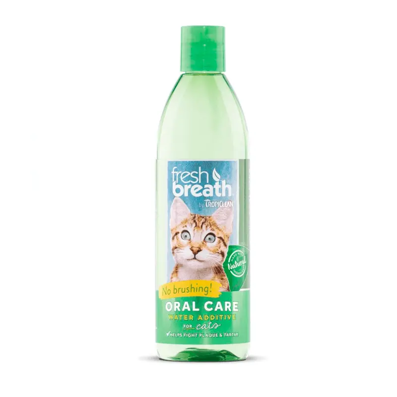 Tropiclean Oral Care Water es un líquido que puedes adicionar al agua de tu gatito para ayudar a proporcionar un buen cuidado bucal ya que permite que se beneficie de la defensa contra la placa y el sarro que proporciona, de manera natural y segura. Utilizar Tropiclean Oral Care Water es muy simple, solo debes agregar una cucharada (una tapita del envase) al tazón de agua de tu mascota y estará listo para disfrutar de los beneficios de una buen cuidado dental y un aliento fresco, sin necesidad de cepillar sus dientes!