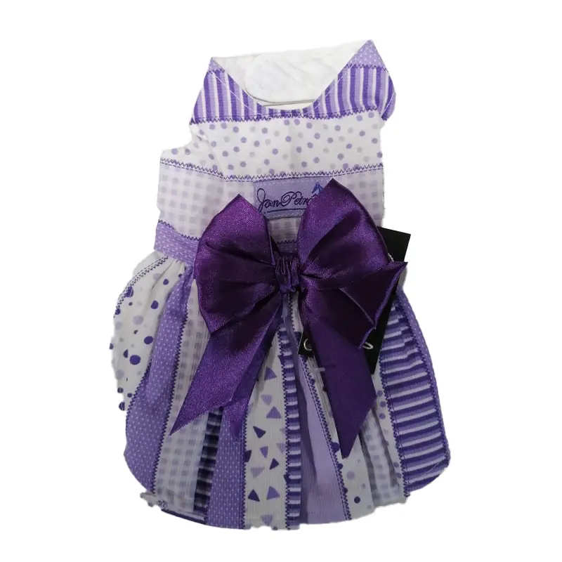 El Vestido Blanco con Detalles en Morado resalta la personalidad coqueta y divertida de tu peludita, con un diseño perfecto para darle el estilo y look a tu mascota con los mejores productos de la reconocida marca nacional Jon Petro.