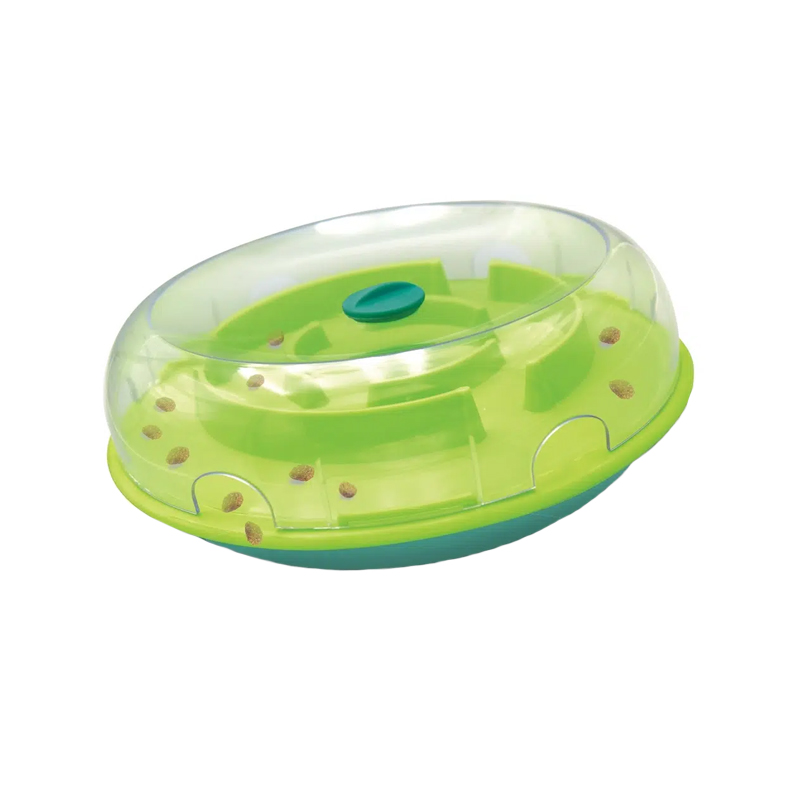 Este no es un juguete para masticar. Inspeccione regularmente por daños y retírelos y reemplácelos si están rotos o si las piezas se separan, ya que pueden producirse lesiones graves. SIEMPRE supervise a su perro cuando use el Wobble Bowl. Una vez vaciado de golosinas o croquetas, el juego debe almacenarse hasta el próximo uso supervisado. Destinado solo para mascotas. Mantener fuera del alcance de los niños.